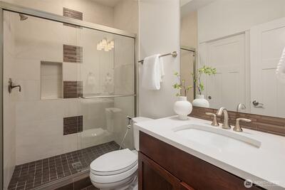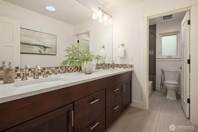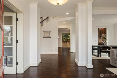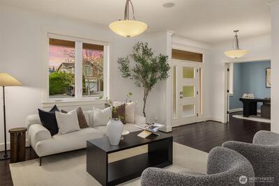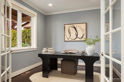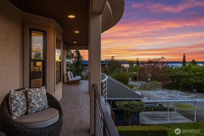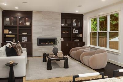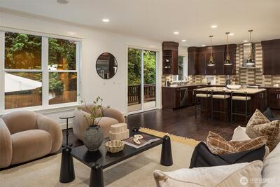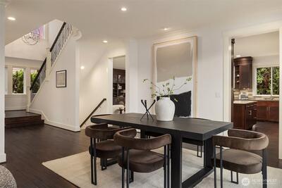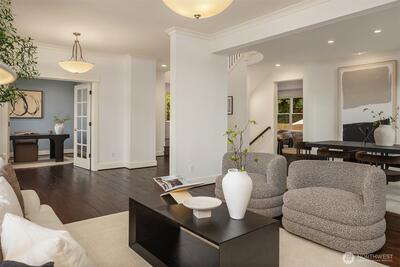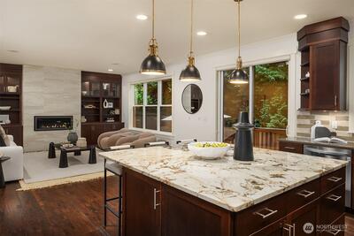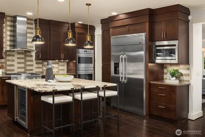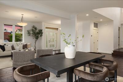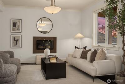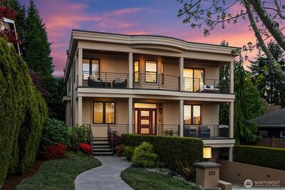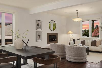 Perfectly positioned near Lake Washington with views stretching to the Olympic Mountains, this beautifully maintained home offers an exceptional Downtown Kirkland location. Thoughtfully designed across 3 levels, the home balances generous entertaining spaces with comfortable everyday living. You are greeted by a main floor office, formal dining room, & living room with gas fireplace. The great room is flanked by custom built ins & flows to the chef’s kitchen fully equipped with rich cherry cabinetry, abundant storage, premium Monogram appliances, & seamless connection to the fully fenced backyard, making gatherings effortless inside & out. Upstairs, discover a bonus room & 3 bedrooms, including a primary suite with large covered deck showcasing exceptional views, a cozy sitting area, gas fireplace, & a refined 5 piece bath. The versatile lower level features new carpets with a rec room, ensuite, & an oversized 2 car garage with epoxy floors & ample storage. Thoughtful updates through