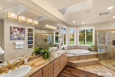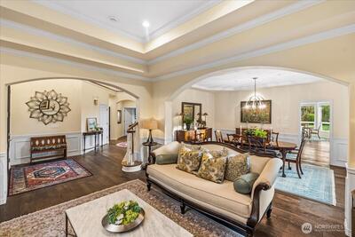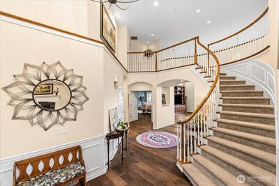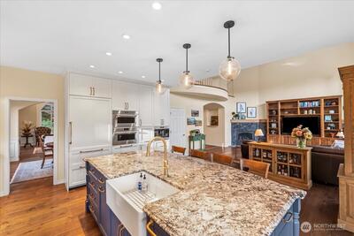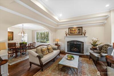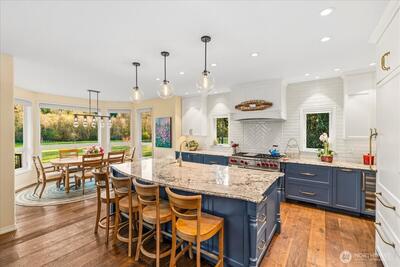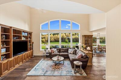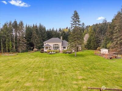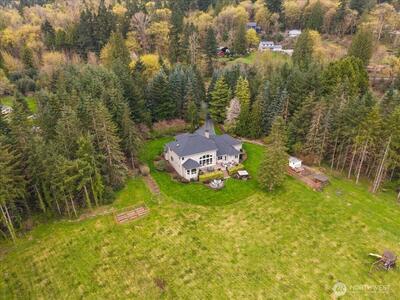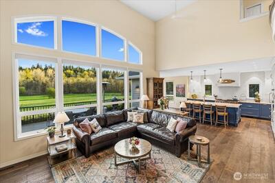 Peacefully set on 5+ acres in Issaquah’s coveted May Valley, this extraordinary estate offers refined living in a private, equestrian-adjacent setting. Featuring soaring ceilings, rich DuChâteau wood flooring, and breathtaking walls of windows on both levels—framing tranquil views of the surrounding landscape and filling the home with natural light. The Designer kitchen is a true showpiece, appointed with Wolf & Sub-Zero appliances, gas range, built-in espresso machine, steam oven, and bespoke finishes—perfectly balancing everyday luxury and elevated entertaining. Expansive living spaces offer both comfort and sophistication, enhanced by gas fireplaces and seamless indoor-outdoor flow. Outdoors, discover a private sanctuary featuring an expansive deck, manicured grounds, fire pit area, hot tub, and a professionally leveled back field—ideal for gatherings, recreation, or simply enjoying the peaceful setting. Surrounded by mature trees, open skies, and neighboring equestrian