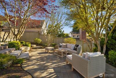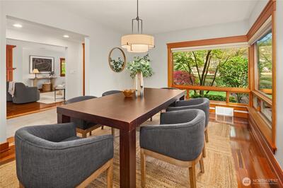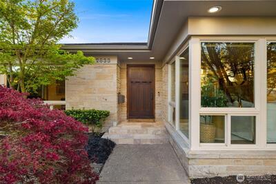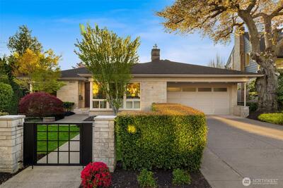 This isn’t your typical mid-century home—it’s a fully reimagined oasis that blends timeless architecture with refined northwest design. Set on a private 8,609 sq ft lot, it offers rare level-entry living elevated by exceptional craftsmanship, including rich cherry hardwoods, heated floors, and custom millwork. Floor-to-ceiling wood-framed windows frame lush views of mature maples, magnolias, hydrangeas, and curated landscaping. Outdoors, vibrant gardens, raised beds, irrigation, lighting, and an outdoor BBQ kitchen complete the setting. At its heart, an updated chef’s kitchen, featuring a spacious island, dual sinks, wet bar, gas fireplace, quartz countertops, & new appliances. It flows seamlessly into both indoor & outdoor dining areas, making this the perfect space for year-round entertaining. Generously sized bedrooms and well-appointed baths—including a spa-inspired primary suite with French doors opening to your own private deck. Enjoy the ease of built-in office space d