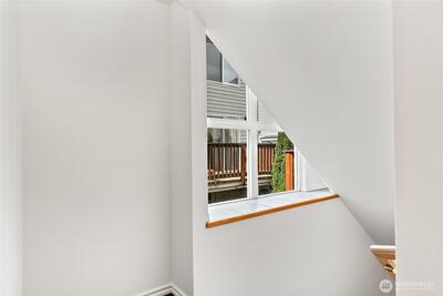 Welcome to this light-filled 3-story townhome designed for easy urban living—with no HOA! Tucked just off Lake City Way w/quick access to nearby shops, dining, and transit while feeling quietly set back from the road. The main level is bright and open, w/large windows, hardwood floors, and a cozy gas fireplace that anchors the space. The kitchen offers generous workspace, a deep sink, and seamless connection to the dining and living areas—perfect for both everyday & relaxed entertaining. Sliding glass doors open to private decks—ideal for fresh air, container gardening, or a quiet morning coffee. Upstairs you’ll find: two bedrooms (incl. spacious primary), both with walk-in closets. A full bath with double sinks and a skylight for extra natural light. Plus a large-capacity washer & dryer (new w/in past few years). Charming details like built-in nooks in the sunlit stair landings add inviting touches as you move thru the home. On the lower level, enjoy an attached garage w/inter