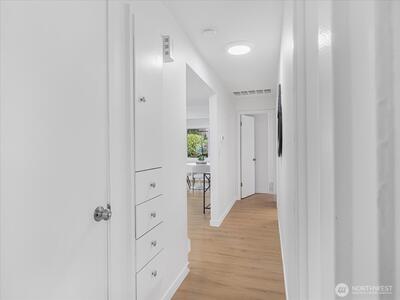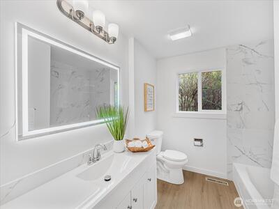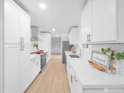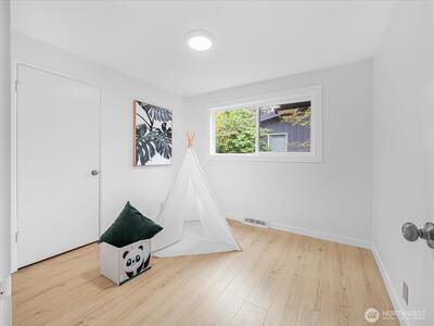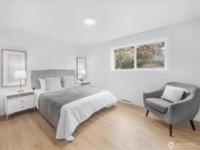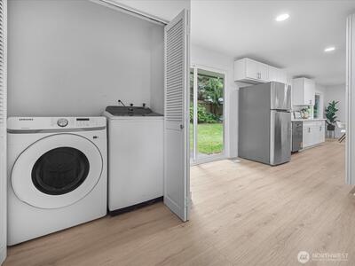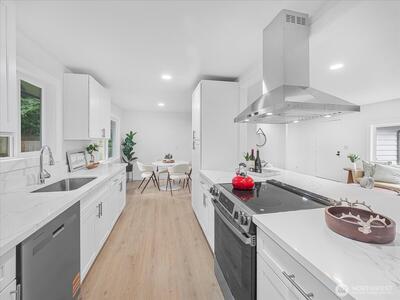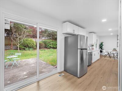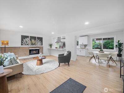 Charming and move-in ready, this remodeled one story Shoreline home blends comfort and simplicity. Inside, you'll find a thoughtful layout with 3 bedrooms, laminate flooring throughout, can lighting, and a warm stone fireplace that adds character to the main living space. The kitchen features newer stainless appliances and easy access to the backyard patio. Outside, the fully fenced backyard offers plenty of room to spread out, garden, or unwind. Attached 2-car garage for convenience. Great location close to parks, shopping, dining, light rail, and highly rated schools. Don't miss out on this fantastic home!