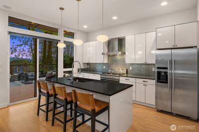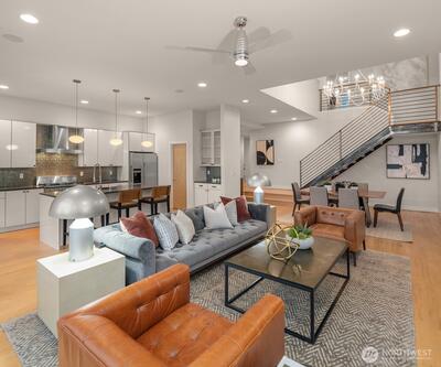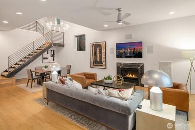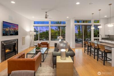 Every space is designed with intention in this striking, modern Arboretum home. Walls of windows bathe the interior with natural light and soaring 12-foot vaulted ceilings add drama. Open-concept layout highlighted by stylish maple hardwoods and inviting fireplace. Refined design element provided by custom metal/wood staircase. Chef’s kitchen features premier stainless appliances from Fisher + Paykel/Bosch and a large walk-in pantry. Oversized primary bedroom suite with spa-inspired bath, walk-in closet, and private balcony. Views of Cascades from upstairs bedrooms. Expand entertainment options with gorgeous outdoor living space. Prime location sits steps from Washington Park/Arboretum. Home is just minutes to eclectic dining and shops of Madison Valley, Capitol Hill, Pike/Pine corridor, and Madison Park. Seamless access to downtown, Eastside cities, I-5 and public transit. This is urban living at an elevated level.