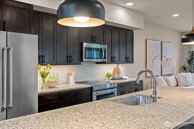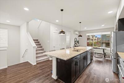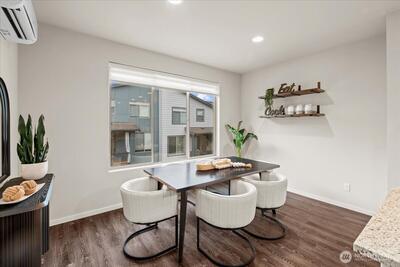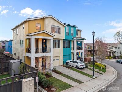 Experience refined modern living in this light-filled corner-lot residence where thoughtful design meets everyday comfort. Positioned to capture abundant natural light, this home offers a seamless blend of style, functionality, and access to West Seattle amenities and community parks. The open-concept main level invites connection, featuring a spacious kitchen with quartz countertops, stainless steel appliances, a large island, and a walk-in pantry, all flowing effortlessly into the dining and living areas. As you enter, vaulted ceilings above the upper level create an open, airy feel that enhances the sense of space. A mini-split system provides year-round comfort, and the home has been pre-inspected for added transparency. Upstairs, three bedrooms include a primary suite with a double vanity, a walk-in closet, and a well-designed bath, along with conveniently located laundry. The lower level offers a private guest suite with a bathroom, suitable for multigenerational living,