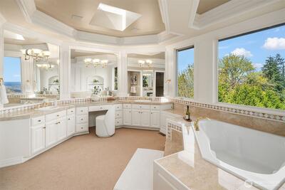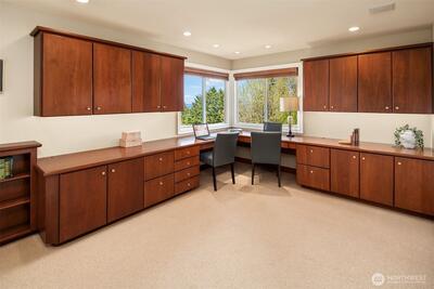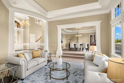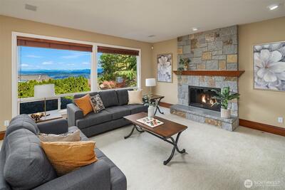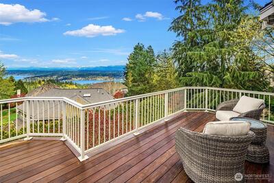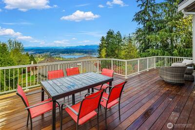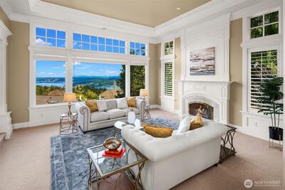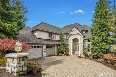 This signature Lakemont estate showcases breathtaking, panoramic views of Lake Sammamish, Mt. Baker, and the Cascade Mountains, an ever changing backdrop that defines the home’s elevated living experience. Crafted in 1998 by renowned builder William Buchan, the residence offers over 5,200 square feet of refined living space, including 6 generous bedrooms, 4.75 bathrooms and an oversized 3 car garage. Thoughtful design details include a richly appointed wood-paneled office on the main level, along with an open upper level loft or homework hub, an ideal space for collaboration, creativity, or quiet productivity. The primary suite is a true retreat, where sweeping sunrise views create an inspiring start to each day. An upper-level guest bedroom features an adjoining flex space, ideal for a playroom, studio, or private lounge. The walkout lower level features a spacious bonus/rec room, offering flexibility for a variety of lifestyles. This home has been meticulously maintained to a high