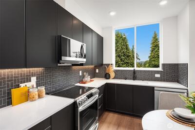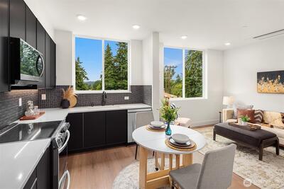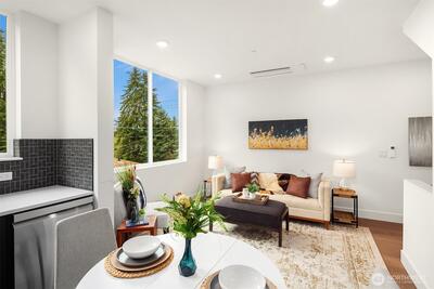 Welcome to this new home from Insignia Development in a fantastic NW Seattle location. Spacious entry leads to first floor bedroom or home office & full bath. Second level has open concept living room & kitchen for entertaining ease. Top floor primary, with spacious ensuite bath and walk-in closet, offers complete privacy from the rest of the home. Enjoy morning coffee or watch the sun go down on your rooftop deck with territorial views, giving you low-maintenance outdoor access. Greenwood & Crown Hill neighborhoods with ample options for dining & night life, plus Met Market blocks away. Attached storage garage for all of your gear, & EV-ready off-street parking included.