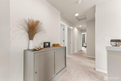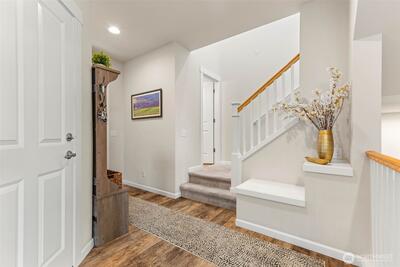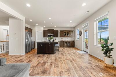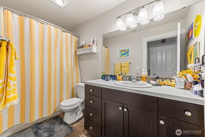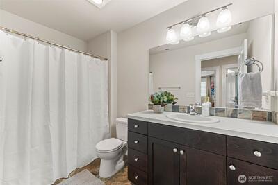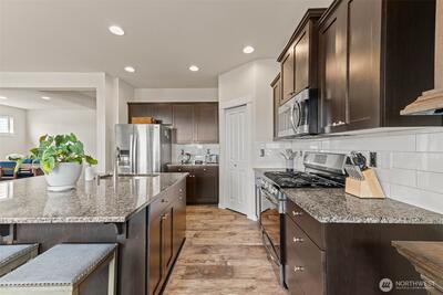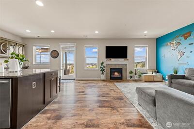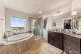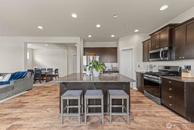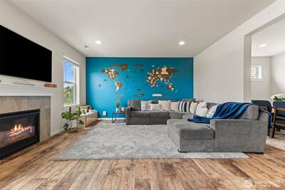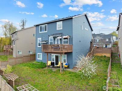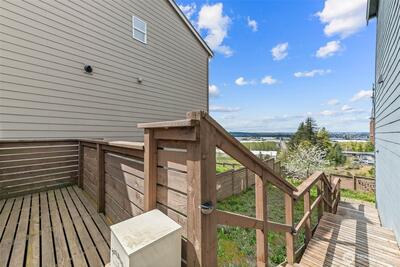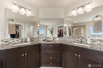 Enjoy stunning west-facing views of the Olympic Mountains and sunsets over Commencement Bay from every level of this beautifully maintained home, showcasing modern design and upscale finishes throughout. The walk-out lower level offers a private living space—currently leased through 6/30—complete with a second kitchen, fifth bedroom, laundry, and bath, ideal for rental income or multi-generational living. The main living area features a cozy gas fireplace, elegant fixtures, and a chef’s kitchen with stainless steel appliances, slab granite countertops, and an under-mount sink. Upstairs, the spacious primary suite includes a luxurious five-piece bath and walk-in closet, along with three additional bedrooms, a full bath, and a versatile media room or office. Additional highlights include air conditioning, a fully fenced yard, and convenient access to community parks, playgrounds, trails, and sidewalks. Located in the highly sought-after Puyallup School District with easy acce