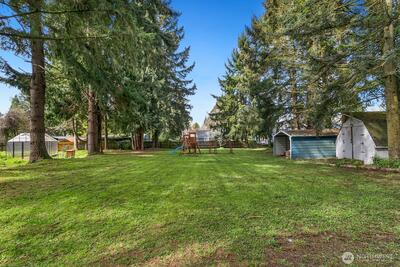 Rare double lot tucked away on a quiet cul-de-sac in the heart of town, just minutes from schools, shopping, & the Lacey Library. This beautifully updated rambler features an inviting open-concept floor plan with 4 spacious bedrooms, including a private primary suite, plus a large bonus room complete with a cozy wood-pellet fireplace. The expansive, park-like backyard offers a true outdoor retreat with a play structure, mature trees (including apple & plum trees, grape vine, blueberries, hardy kiwi, strawberry patches), a firepit, modern 16x10 greenhouse, garden space, tool shed, and a carport covered wood storage area. A standout feature is the large 576 sf shop with a 12x24 attached carport, equipped with a 240-amp high-capacity electrical panel & built-in air compressor, all permitted —perfect for hobbies, projects, or extra storage. There’s also ample space for RV or recreational vehicle parking. Inside, the home boasts a 2-car garage with workshop space, storage shelving, & a