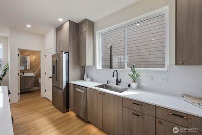 Welcome to this inviting home in Seattle’s desirable Greenwood neighborhood, where classic charm meets everyday convenience. Thoughtfully designed with comfortable living in mind, the interior features bright, open spaces filled with natural light, creating a warm and welcoming atmosphere throughout. The kitchen offers ample storage and functionality, flowing seamlessly into the main living areas—perfect for both relaxing and entertaining. Outside, enjoy a private rooftop with stunning views of downtown Seattle and Mt Rainier. Conveniently located near local parks, shops, dining, and major commuter routes, this home offers the perfect balance of neighborhood tranquility and city accessibility.