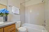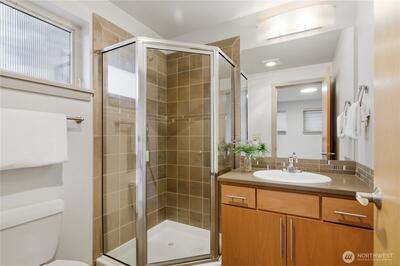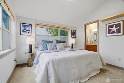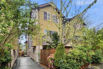 Welcome to this modern duplex-style townhome in Green Lake neighborhood, where sleek design meets effortless urban living. The well-designed floor plan features open-concept living, a functional kitchen with SS appliances, quartz countertop and gas range, opening to dining and living room. The south-facing living room is bright and inviting, opening to a deck for seamless indoor-outdoor living. The entire top floor is beautifully vaulted, the master suite has amazing views of Mt. Rainier and Green Lake. All three bedrooms feature their own bathroom, including a lower-level suite that offers ideal flexibility for guests, work-from-home, or multigenerational living. Enjoy your fully fenced generously sized backyard, as well as a garage and tankless water heater. Convenient location, with easy access to Hwy 99, I-5, and nearby neighborhoods of Greenwood, Phinney Ridge, and Green Lake. Enjoy the close proximity to many great local shops, restaurants, cafes, parks, and more nearby. A perfec