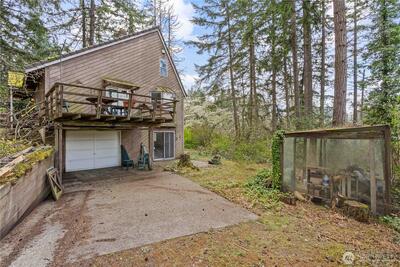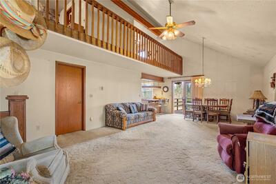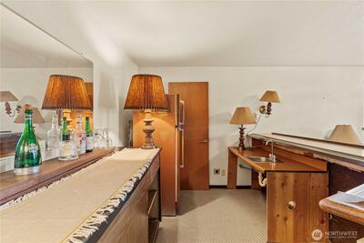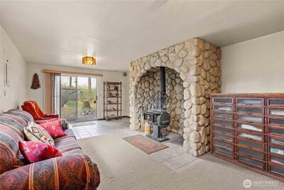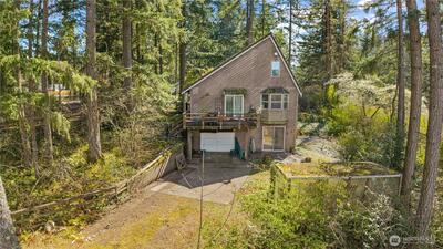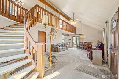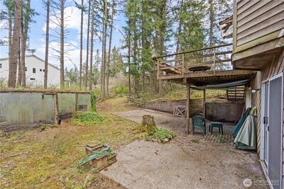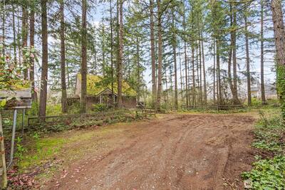 Tucked away on over an acre of private, wooded grounds, yet close to Mt. Hwy, shopping, amenities, golf, and JBLM, this property offers space, character, and incredible potential. With 1,811 square feet, the home features a functional layout with a daylight basement and an upstairs loft, plus a main-level primary bedroom for convenient living. Inside, you’ll find warm wood accents throughout, a spacious kitchen, and an open living area filled with natural light. The lower level is a standout, featuring an impressive stone fireplace positioned next to the wet bar, creating the perfect setting for entertaining or a cozy retreat. The expansive basement space offers excellent flexibility for gatherings or future conversion. This home is ready for its next chapter and will likely be updated or reimagined, making it a great opportunity for an investor or first-time homebuyer looking to build equity. The durable tile roof adds long-term value, and the home is serviced by a private well, whi