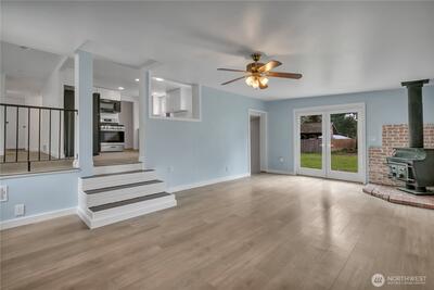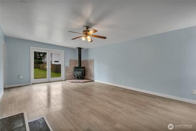 Super close-in yet tucked away for privacy, this fully fenced 3-bed, 1.75 bath home offers 1,880 sqft of space, comfort & versatility on a generous .31-acre lot—with RV parking. Enjoy multiple living spaces including living room, welcoming family room with a cozy wood stove, & separate rec room—perfect for entertaining, relaxing or flexible use. New French doors open to multiple outdoor spaces, including 2 decks & a patio, creating ideal spots to unwind or host gatherings. The home features 2 beds & full bath on the main floor, with 1 bed & attached 3/4 bath located in the fully finished basement—ideal for guests, extended living or added privacy. The updated kitchen features new cabinets, countertops, gas range, microwave, farmhouse sink & dishwasher. New LPV flooring flows through much of the home, complemented by fresh interior paint throughout. The main floor bath has been recently remodeled with new lighting, vanity, toilet, plumbing fixtures, & trim. Just steps from North