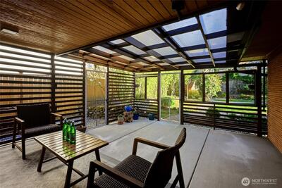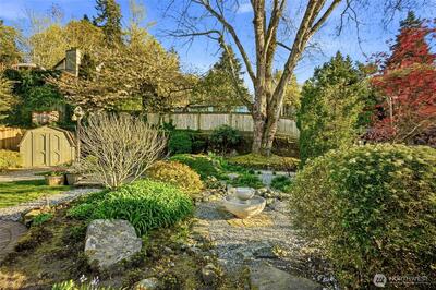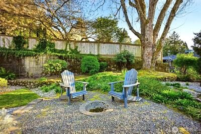 Mid-century modern home on Scenic Hill set on a beautifully landscaped lot with mature plantings, fire pit, covered patio, and view deck with territorial outlooks. Interior features include large windows that fill the home with natural light, a gas fireplace, and built-in bookshelves in the living room that add character and functionality. Updated kitchen offers granite countertops, stainless steel appliances, and a layout that connects smoothly to the main living and dining areas. Bathrooms have been refreshed with modern finishes while maintaining the home’s original mid-century feel. Main living space offers a comfortable, open flow with direct access to the deck, creating an easy indoor-outdoor connection ideal for everyday living or entertaining. Primary suite includes a walk-in closet and private en suite bathroom. Additional bedrooms provide flexibility for office, guests, or expanded living needs. Convenient Scenic Hill location with quick access to Hwy 167, I-5, and