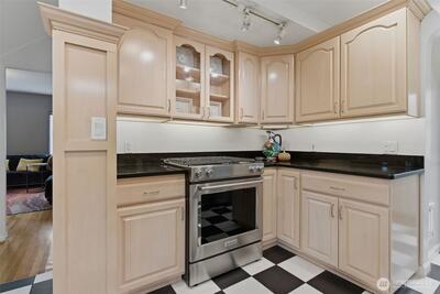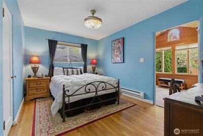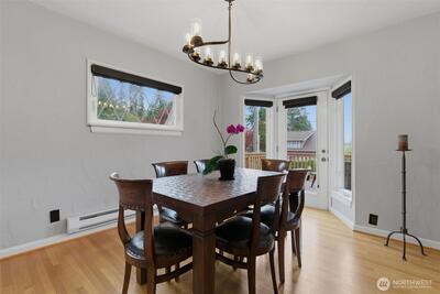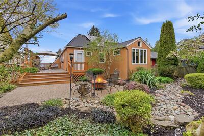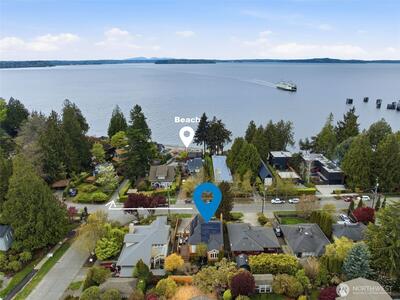 A 1927 Tudor beauty—welcome home! Featuring 3 beds + den and 1.75 baths, this home is located in one of West Seattle’s most coveted neighborhoods, mere steps from the water. Beaches, parks, whales, and eagles create a stunning backdrop for everyday living in Fauntleroy. Classic architecture and timeless charm blend seamlessly with modern updates in this light-filled home. Recent improvements include new and refinished wood flooring, a gas fireplace, updated light fixtures, and fresh interior paint. Updated kitchen features granite countertops, stainless steel appliances and heated tile flooring. Choose your ideal primary bedroom—a quiet main-level sanctuary with dual closets and an adjacent office looking onto the lush, private backyard, or a spacious top-floor retreat with custom built-ins. Fall in love with charming 2nd upstairs bedroom with built-in storage and a storybook window with incredible water views. Basement offers additional living space with high ceilings, new insul