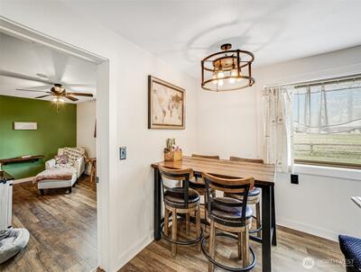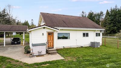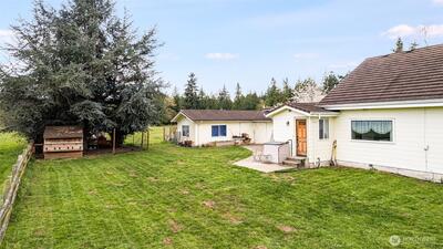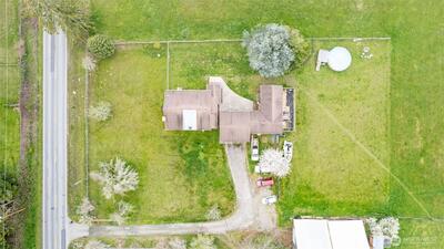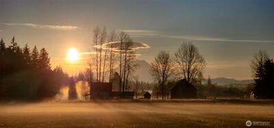 Welcome to First Lookout Farm—where Mt. Rainier greets you daily with breathtaking beauty. Nestled on just shy of 10 acres in Yelm, this charming farmhouse offers the perfect blend of peaceful country living and functional equestrian lifestyle.Featuring 4 bedrooms, 2 baths, plus an additional office/flex room with inspiring views, the home boasts a desirable open floorplan designed for easy living. Expansive picture windows capture stunning vistas in every direction—sunrise over rolling hayfields and snow-capped mountains to the east, and sunset views of the timeless barn and apple tree orchard to the west.The property is thoughtfully equipped for both comfort and productivity, including a proper mudroom with laundry, detached shop with multiple workshop spaces, and EV charger. Outdoors, enjoy a private recreation area with a 22' pool, adjacent deck, and sun sail—perfect for summer entertaining. Ideal for equestrian or hobby farming, the fully fenced and gated acreage includes g
