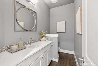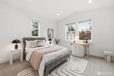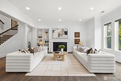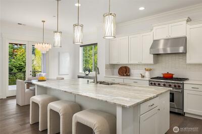 Exceptional JayMarc resale showcasing timeless craftsmanship and a thoughtful layout. Set on a private dead-end street just minutes from Downtown Bellevue’s premier dining, shopping, and amenities, this home offers both privacy and convenience. Designed for entertaining, the open great room flows to a large covered deck through French doors, creating effortless indoor-outdoor living. The chef’s kitchen features top-tier Sub-Zero and Wolf appliances, a butler’s pantry, and a casual dining area. An ocean wave–inspired natural stone island with a leathered finish serves as a one-of-a-kind centerpiece. Upstairs includes four spacious bedrooms and three baths, highlighted by a luxurious primary suite with a sitting area, a generously sized spa-like bath, and a walk-in closet, all framed by vaulted ceilings and bright, airy interiors. The refined lower level features a spacious rec room that opens to a flat, west-facing backyard, along with a private guest space and separate entrance