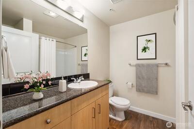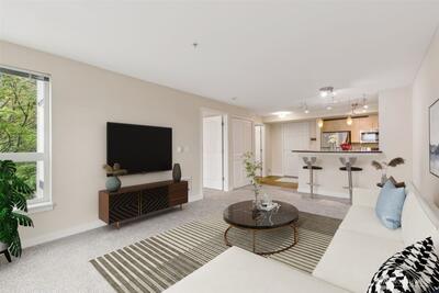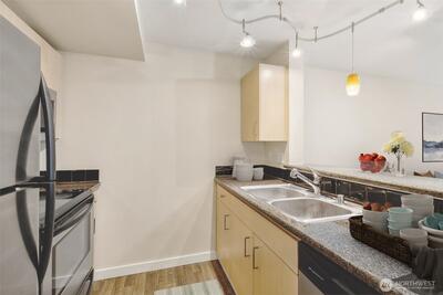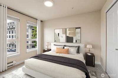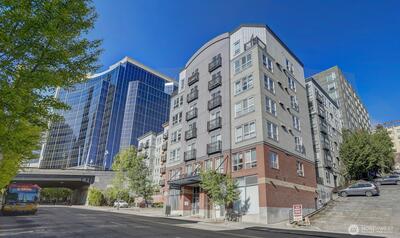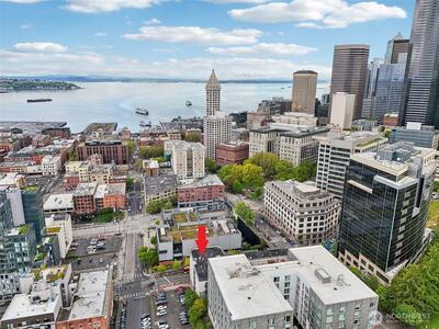 Vibrant city living with breathtaking sunset views—at an exceptional price! Perfectly situated in the heart of the city with an impressive Walk Score of 98, this home puts you moments away from top dining, coffee shops, sports stadiums, the Waterfront Park, and multiple transit options, including the new Link Light Rail to Bellevue. Unwind each evening with picturesque sunsets and tranquil glimpses of Puget Sound from this charming, upper-floor end unit, well maintained by its original owner. The home includes an assigned parking space and storage unit; inside, you'll enjoy a spacious, light-filled living area, bistro bar, stainless steel appliances, in-unit laundry, and a full bath with tub. A custom walk-in closet and Juliet balcony add both function and charm. No special assessments, pet-friendly, and no rental cap! This one is a must see—schedule a tour today & let the sunsets inspire you!