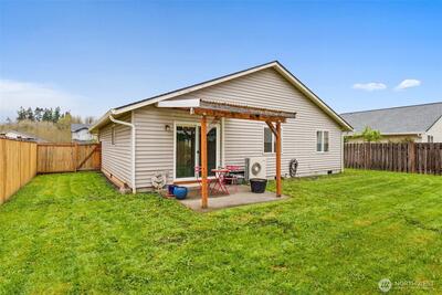 This 3 bed, 2 bath rambler is in great condition and ready for move-in. Home features laminate floors, vaulted ceiling, beautiful walk-in shower in primary bathroom, ductless mini-split system with A/C, ceiling fans, complete appliance package including washer & dryer, covered patio, fully fenced yard, 2 car garage, and room to park an RV. Located in a nice community, close to I-5 access, and located between Seattle and Portland. A cute home in great condition. Come see it today before it's gone, gone, gone.