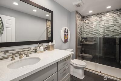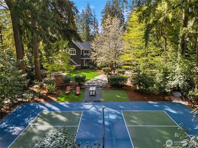 Set on an expansive 28,061 sq ft lot in the heart of Enatai, this beautifully designed Camwest home offers a rare blend of space, comfort, & lifestyle just minutes from downtown Bellevue, 520, and 405. Hardwood floors, dual staircases, a private office, & refined formal spaces create a sense of quiet sophistication, all leading to a chef’s kitchen with a Wolf range, Subzero refrigerator, & an oversized island that opens seamlessly to a light filled great room w/ skylights that bring in natural light throughout the day. The primary suite provides a peaceful retreat with a sitting area & spa inspired bath. 5 additional bedrooms plus a large bonus room with a step out deck are thoughtfully positioned on the upper level. Outdoors, a covered patio with skylights, stone & flagstone entertaining areas, a new turf yard, & a full professional pickleball court complete the setting, all just moments from Enatai Beach Park, award winning Bellevue schools, & premier shopping & dining.