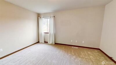 Immaculate 3 bedroom home in Lacey's Kensington neighborhood featuring main floor primary suite! This home has been lovingly maintained and is loaded with desirable features. You're welcomed into the spacious living room with laminate hardwood flooring and a gas fireplace. Vaulted ceilings and large upper windows flood the space with natural light. The living room opens to the dining room, which also features vaulted ceilings and abundant natural light, plus tile flooring. The dining room flows into the kitchen, with bar seat, built-in desk space, pantry, tile flooring, and all kitchen appliances are included. The main floor primary suite features laminate hardwood flooring and includes a walk-in closet and private en suite 3/4 bathroom with walk-in shower. A powder room and the laundry room complete the main floor. The main floor features extra wide doorways, solid surface flooring, an access ramp in the backyard and other accessibility features. Upstairs you'll find brand new carpeti