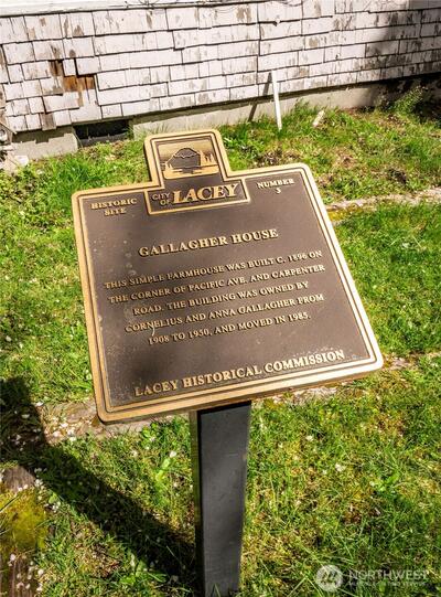 The Historic Gallagher House of Lacey! This classic home is seeking a new owner who is ready to bring their creativity and vision to this charming property. It offers 3-bedrooms, 1-bath, and a small loft area that can be used for storage or another bedroom. The home offers great potential for restoration and personalization. A large, covered front porch welcomes guests and provides a comfortable space to relax. The property also includes a spacious yard, perfect for gardening enthusiasts, and features established fruit trees that add both beauty and utility to the landscape. The Gallagher House is conveniently situated near all Lacey amenities, including local coffee shops and a variety of stores and food establishments, making it an ideal location for those who value community and accessibility. This is a unique opportunity for someone with the skills and imagination to restore a historic home! Bring your tools and creativity to bring this cutie to the best potential of this special