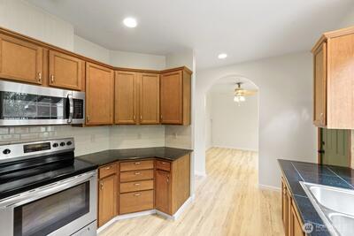 This lovely traditional home is located just blocks from North Hill Elementary. Home boasts gated private driveway, that lends to a tranquil fully fenced yard w/ 2 garage & carport. Home has new vinyl plank (hardwoods underneath) through out, 3 bedrooms plus office space/4th bedroom on upper level. Primary suite with 5 piece bath plus walk-in closet. SS appliances, picture perfect window above kitchen sink that overlooks flat backyard with patio and outdoor shed. Perfect for entertaining, or for your furry friends. Garage space has engineered flooring, & could be used for rec room, office, gym or garage. This home was originally built for a builder's primary residence-it has the workmanship that you would expect! Home is a also less than a mile away from the light rail station, close to TJ's, PCC , the airport and Downtown Des Moines.