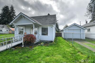 Charming 3-bedroom, 1-bath home featuring a large, comfortable living room and a functional layout. The bathroom includes a convenient walk-in tub for added accessibility and comfort. The property offers a fully fenced yard, providing privacy and space for outdoor activities, with a paved alley providing easy access to the back of the property. A detached one-car garage includes additional workspace, perfect for hobbies, storage, or projects. The home also features a handicap-accessible ramp to the front door. Ideally located within walking distance to grocery stores, schools, the post office, and local restaurants, making everyday errands and dining out easy and convenient.
