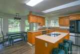 Beautifully updated 3-bedroom, 2-bath home featuring numerous recent improvements and exceptional outdoor amenities. Large office/den. The kitchen is equipped with all new appliances, including a commercial double oven, perfect for cooking and entertaining. The spacious primary suite offers a newly tiled walk-in shower for a modern spa-like feel. Additional upgrades include a new roof, new water heater, fresh interior paint throughout, and a new wood stove for cozy warmth. The home also features a convenient central vacuum system. Step outside to enjoy the landscaped backyard with an outdoor sprinkler system, relaxing hot tub, and a tranquil water feature with pond just off the back patio—ideal for peaceful evenings. Gardeners will appreciate the fenced orchard and raised garden beds. The property also includes an impressive 48x36 three-door shop with attached lean-to for additional covered storage, plus RV covered parking with canopy and power hookup. New tough shed at end of