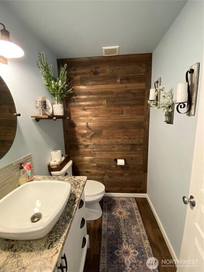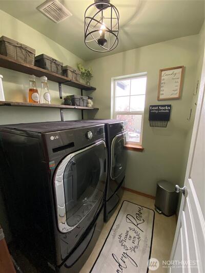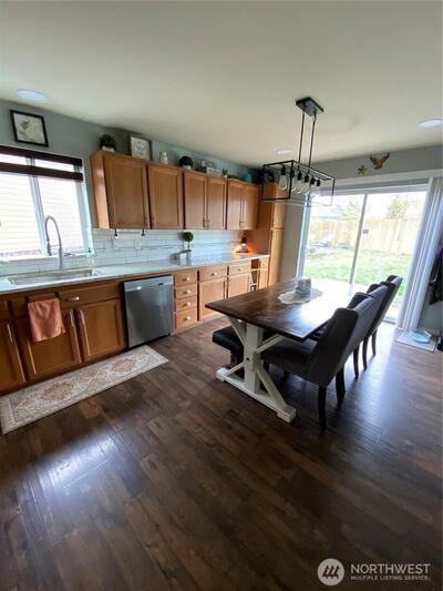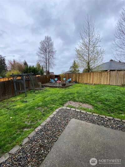 Welcome to this beautiful almost 2300 sq ft home in the Autumn Glen neighborhood! This floor plan is inviting as soon as you enter the front door! Just some of the upgrades: Kitchen cabinet expansion with new sink, faucet, granite counter-tops, new double oven, dishwasher, microwave & garbage disposal 2022; Fireplace wall has been tiled with new mantel; New Pergo flooring 2022; Half bath upgraded with new vanity, granite counters, above counter sink, faucet & lighting; New high efficiency furnace and heat pump; main floor bedroom; 3 additional bedrooms upstairs with a flex room as well as a loft area; Primary bedroom with ensuite offers a soaking tub, spacious bathroom and huge walk-in closet; new lifeproof pet carpet installed 2024; Fully fenced backyard with 3 magnolia trees, dogwood tree, Japanese lilacs, weeping spruce & PNW hibiscus; new 18x11 Indian Sandstone patio, firepit and a 120sq ft insulated shed with loft! This home has so much to offer with a well laid out floor plan and