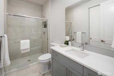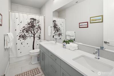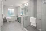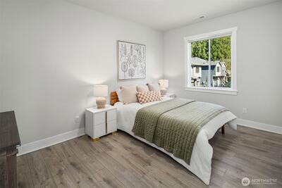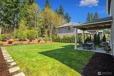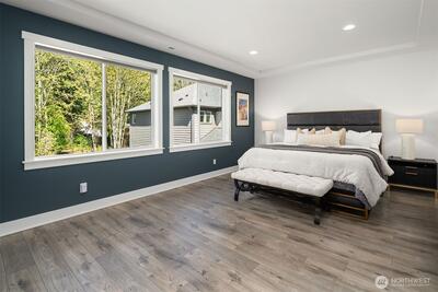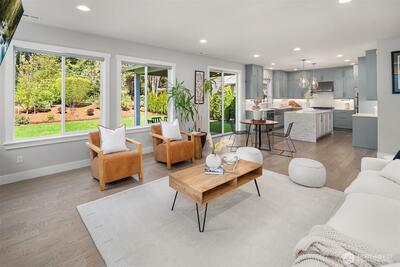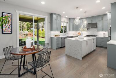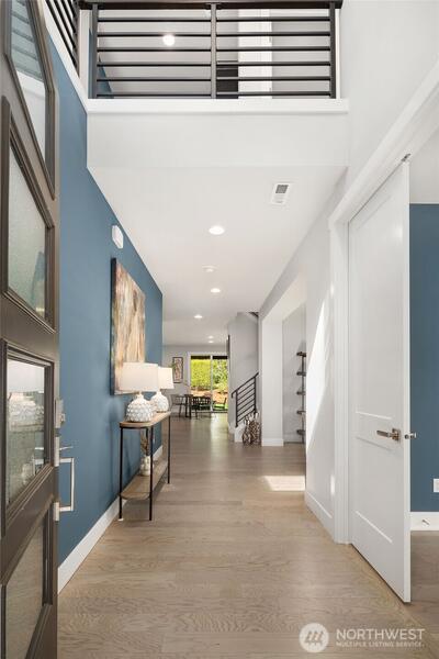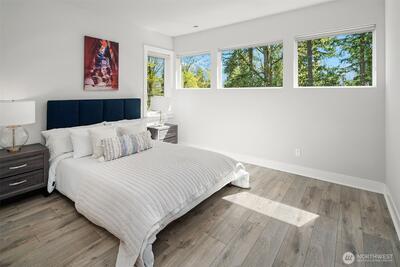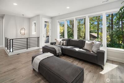 Welcome to this modern home built in 2021, situated in Finn Hill, Kirkland, near the desirable Juanita neighborhood. Set on nearly a 1/4-acre lot, this 5-bedroom, 2.75-bath residence has a bright and open design with 9-ft ceilings on both levels. Step inside to find a main-floor office that offers flexibility as a guest space or 5th bedroom, conveniently located next to a 3/4 bathroom. The home features engineered flooring throughout, an open-concept living room and kitchen, and plenty of thoughtful design details. The kitchen impresses with stunning quartz countertops, stainless steel appliances, light cabinetry, and a formal dining room complete with a butler's pantry. Upstairs, the primary suite offers a peaceful retreat with two walk-in closets and a spa-like bathroom overlooking a greenbelt. The upper level also includes three additional bedrooms, a spacious bonus room, a utility room, and a full bathroom. Additional features like A/C, an EV charger, an invisible fence and a large