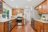 Beautifully updated 2-story home in a prime North Rose Hill location with sought-after southern exposure. Tucked at the quiet end of a cul-de-sac, this 3-bedroom, 2.25-bath plus den home offers 1,830 square feet on a 6,738 square feet lot backing to North Rose Hill Woodlands Park for exceptional privacy and a peaceful setting. The inviting interior features soaring cathedral ceilings, a sunken living room with fireplace, and formal dining. The spacious kitchen with eating area opens to the family room and sliding doors to a large Trex deck, creating seamless flow for everyday living and entertaining. Vaulted ceilings enhance the airy feel, while stainless steel appliances, ceramic tile baths, and heated floors in the primary bath add comfort and style. All bedrooms and den connect well to main living areas. The fully fenced backyard offers low-maintenance artificial turf, storage shed, and space to relax or play. The oversized 2-car garage is finished and insulated for year-round com