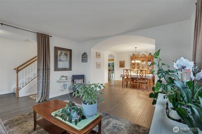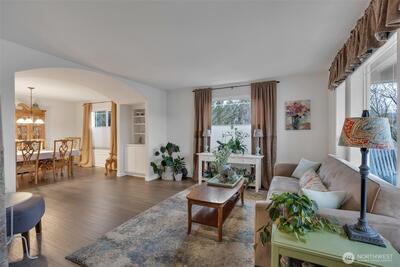 Meticulously maintained home in the highly sought-after Browns Point neighborhood. A beautifully manicured front lawn and garden welcome you to a charming covered front porch. Inside, the light-filled living room flows through an elegant arched opening into the formal dining room with built-ins and classic wainscoting. Rich bamboo hardwoods span the main level, adding warmth and continuity. The inviting family room features a cozy tile-surround fireplace and expansive windows that fill the space with natural light. The well-appointed kitchen offers a pantry, oak cabinetry, stainless steel appliances, and a spacious dual-level island with eating bar-ideal for both everyday living and effortless entertaining. An eat-in dining area opens to the patio, creating seamless indoor-outdoor flow. Upstairs, the generous primary suite includes a walk-in closet and ensuite bath with dual sinks, soaking tub, and separate shower. Three additional bedrooms, a full bath, and a convenient upper-level ut