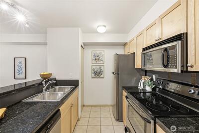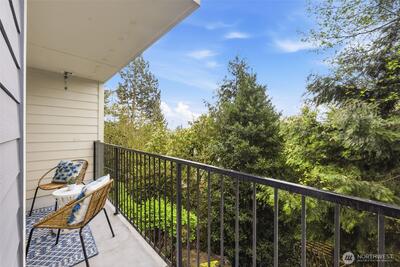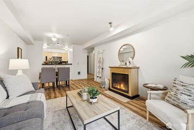 Pristine condo in the heart of Greenwood offers a private oasis with great western sunlight while nestled amongst evergreens. Just two blocks from the new Trader Joe's and walking distance to everything Greenwood and Phinney Ridge have to offer, this one-bedroom home is a must see. Tucked off the main street in a park-like setting, dine al fresco on the expansive covered deck while listening to the birds, or enjoy cozy evenings around the fireplace. Entertain with a dining area large enough to accommodate a full-size dining table, or enjoy one of the many neighborhood restaurants and cafes this special neighborhood has to offer. Complete with a washer and dryer, secure garage parking with bicycle storage, a well-run HOA, great public transportation and nearby cycling routes, this beautiful condo offers the very best of Greenwood-Phinney living!