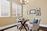 Shea-built Messina floorplan located on a golf course lot with wooded buffer in the Jubilee 55+ community in Lacey. Single-level layout with den/office and excellent separation between the spacious primary suite and guest wing. Open-concept design with 10 ft ceilings, engineered hardwood floors, upgraded millwork, built-ins, and gas fireplace with stone surround. Kitchen features granite counters, stainless steel appliances, gas range, counter-depth refrigerator, under-cabinet lighting, and pull-out shelving in most cabinets, plus additional flex space off the kitchen suitable for breakfast nook, den, or office. Primary suite includes walk-in closet with organization system, double vanity, and tile surround shower. Interior includes tile entry, updated lighting, laundry sink with cabinetry, and fresh interior paint. French doors open to three covered patios, water feature, fully fenced yard, raised beds, and sprinkler and drip irrigation systems with views of the wooded golf course buf