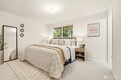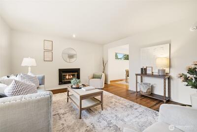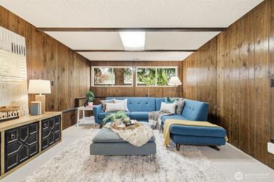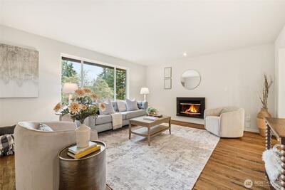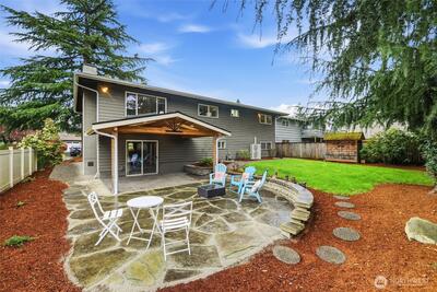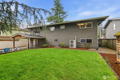 Beautifully maintained Bellevue home with fresh updates, great living space, and an inviting backyard setting. Fresh interior paint, brand new carpet, refinished hardwood floors upstairs, heat pump, and newer furnace and hot water tank make this home move-in ready. The covered porch, flagstone patio, and spacious backyard create a great setup for relaxing, entertaining, or play. Upstairs offers 4 bedrooms, while the lower level features a large rec room with fireplace, wet bar, and slider to the backyard. Oversized garage provides excellent storage and flexibility. Conveniently located near parks, within walking distance to schools, about 5 minutes to light rail, and just minutes to Microsoft.