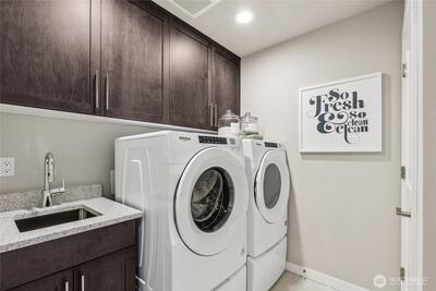 Welcome to Parkside at May Creek in Newcastle, where peaceful natural surroundings blend seamlessly with everyday city convenience. Just released, this highly sought-after north-facing Caslon floor plan sits on a generously sized homesite and is filled with natural light throughout. The home offers a main-level bedroom and 3/4 bath, ideal for guests or multi-generational living. The expansive great room showcases vaulted ceilings and a cozy fireplace, flowing effortlessly into the dining area and gourmet kitchen—perfect for daily living and entertaining. The chef’s kitchen features upgraded KitchenAid appliances, a 48" built-in refrigerator, gas cooking, and an oversized island that truly serves as the heart of the home. Step outside to a spacious backyard with a large, covered patio, ideal for year-round entertaining. Additional highlights include Smart Home features, central A/C, EV charger readiness, and fencing. Enjoy community amenities such as a park, picnic area, playground,
