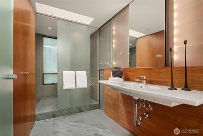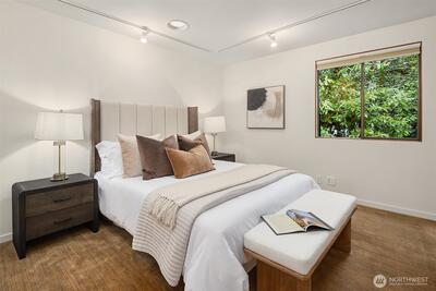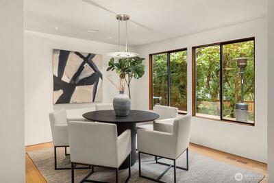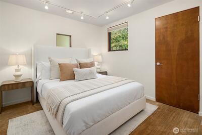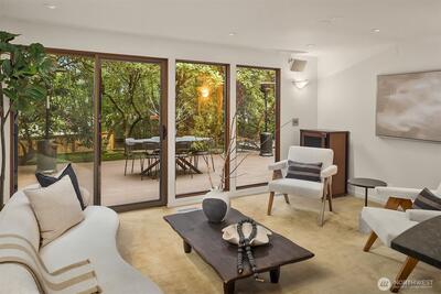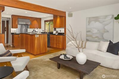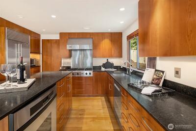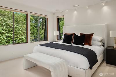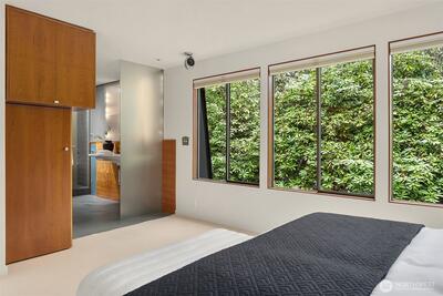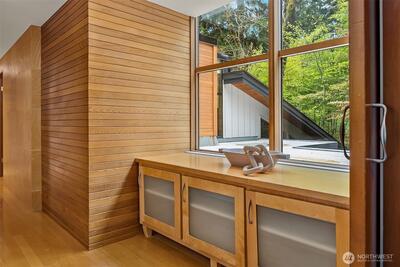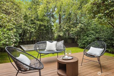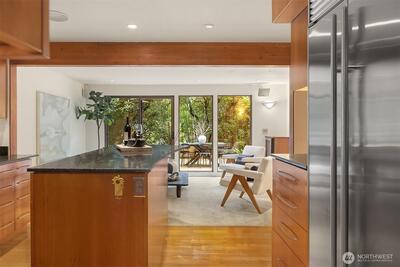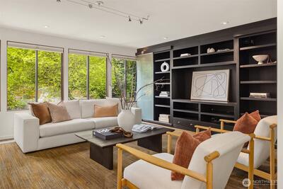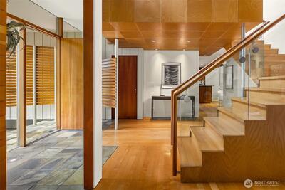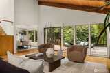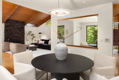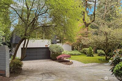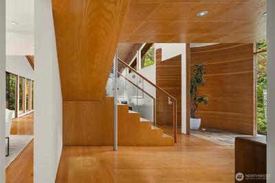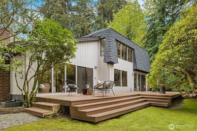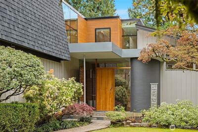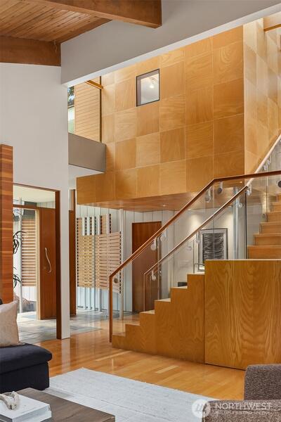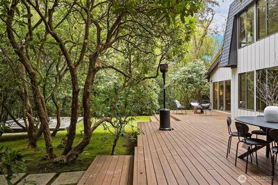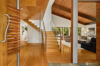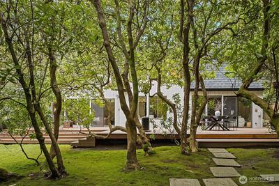 Set on a verdant & private lot, this one of a kind NW contemporary is surrounded by blooming rhododendrons, mature trees, & lush landscaping that create an atmosphere of serenity. Intricate wood detailing anchors the heart of the home, setting the stage for an architectural marvel. Vaulted tongue & groove ceilings, exposed beams, quarter sawn ash hardwoods, rich cherry millwork, & a floating wood & glass staircase crowned by a dramatic skylight create an unforgettable moment the instant you open the front door. The kitchen features Viking, Dacor, & Subzero appliances, granite countertops, solid cherry cabinets, & a massive solid wood pocket door to the dining room. Formerly a nursery, the backyard is a private botanical sanctuary with a large deck, fire pit patio, landscape lighting, irrigation, & exceptional outdoor spaces designed for gathering or quiet retreat. Upstairs, discover a bonus room with custom media cabinetry & 4 beds, including a primary suite with wool carpet, spa inspi