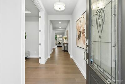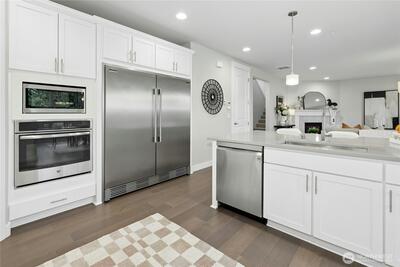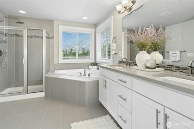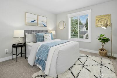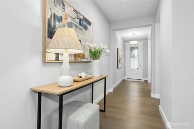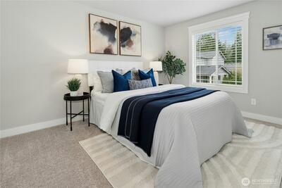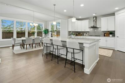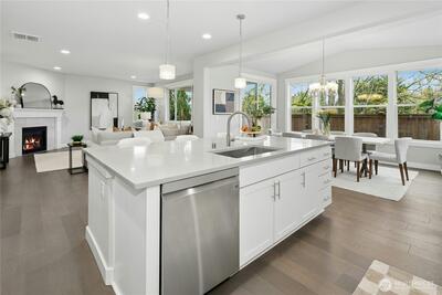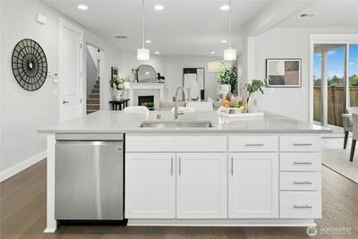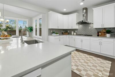 Finn Hill location finds this remarkable and like-new craftsman home situated on a desirable corner lot at the end of a quiet cul-de-sac. Welcoming leaded glass front entry opens to a thoughtfully designed floor plan featuring an office/bedroom and main-level 3/4 bath. The kitchen shines with 3 cm quartz countertops, oversized Frigidaire refrigeration, large center island and a convenient walk-in pantry. Open and inviting great-room design, built for everyday living and entertaining. This flawless home exudes lavish style throughout. The second level includes 4 spacious bedrooms plus a bonus room. The primary suite offers a luxurious retreat through elegant double entry doors. Enjoy comfortable outdoor living with a covered back patio, gas connection for BBQ, and a fully fenced yard, perfect for entertaining or relaxing. Additional highlights include air conditioning, a security system, and garage EV wiring for modern convenience. Brand new hot water heater. This home truly c