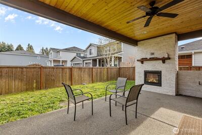 Former model home showcasing upscale finishes and exceptional attention to detail throughout. The main level features a bright open-concept design with a chef’s kitchen, expansive island, rich hand-scraped hardwood flooring, custom built-ins, formal dining space, and a dedicated home office. Enjoy year-round outdoor living on the covered patio, complete with a fireplace and TV hookup. Upstairs, the generous primary suite offers a luxurious five-piece bath and walk-in closet, along with three additional bedrooms, a versatile bonus room, and a convenient full laundry room. The oversized garage provides space for four vehicles or three plus a workshop. Ideally situated near parks, shopping, and scenic trails.
