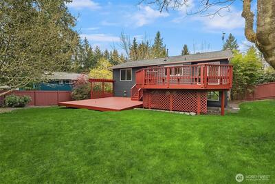 Tucked into a quiet pocket of highly desirable Education Hill, this fully renovated 3BR/1.5BA on a sprawling 10,000SF lot sits within walking distance of top-rated Rockwell Elem and Redmond Middle/High Schools. Light-filled and inviting, the versatile layout plus bonus room (ideal office or gym) is completely move-in ready. The 2026 refresh features a new master bathroom with a modern tub/shower combo and updated vanity, plus popcorn-free ceilings, designer paint, and durable LVP flooring. An open-concept main floor centers on a beautifully updated kitchen with new quartz counters, island, and smart appliances, flowing seamlessly into the living area and out to an expansive tiered deck—perfect for entertaining or everyday living—overlooking a private, fully fenced backyard oasis. Beyond aesthetics, the home is engineered for total reliability: a whole-home automatic standby generator, high-efficiency gas furnace, and central A/C ensure comfort through any season. Tech professionals