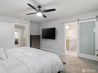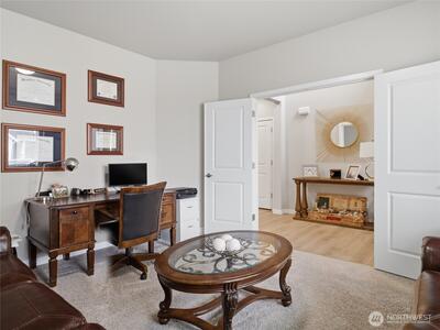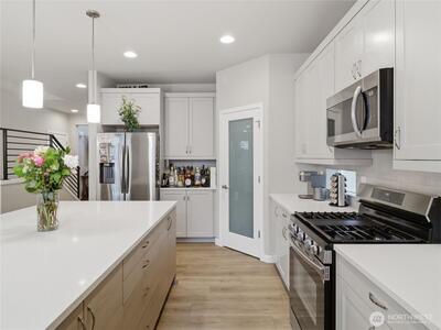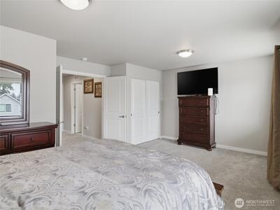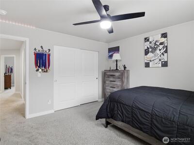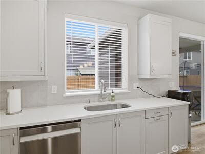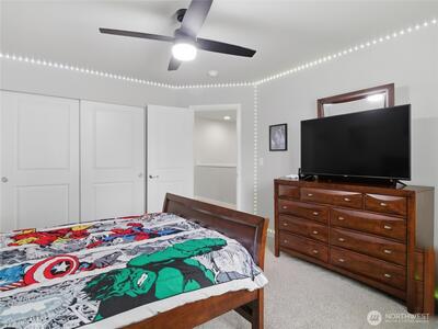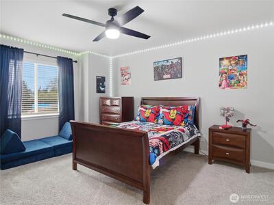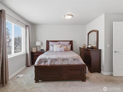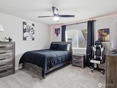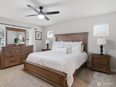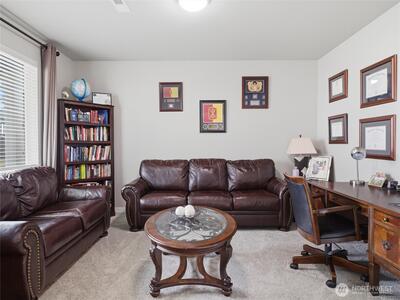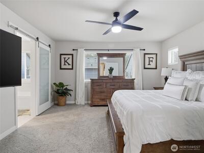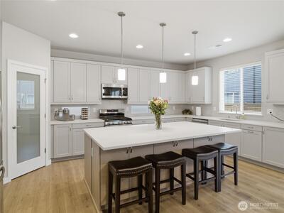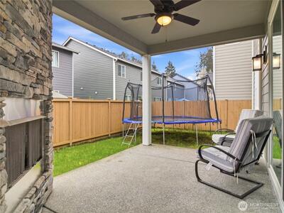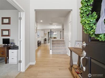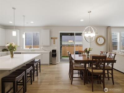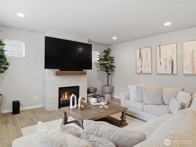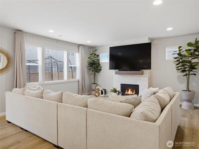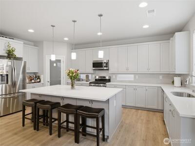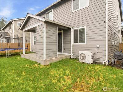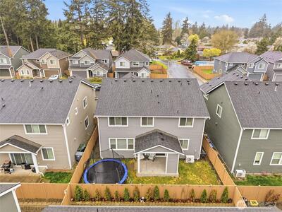 Beautiful, better than new 2022-Rush built home in upscale Spanaway neighborhood, offering 4 bedrooms & office and over 2,800 sq ft of modern living. This thoughtfully designed home features an open-concept layout with a spacious kitchen showcasing custom cabinets, quartz countertops, a large island, and durable LVP flooring throughout the main level. Stay comfortable year-round with an energy-efficient heat pump. Upstairs, enjoy generously sized bedrooms including a luxurious primary suite with walk-in closet and private bath. Fully fenced yard and covered patio w/fireplace provides space for outdoor entertaining or relaxation. Conveniently located near JBLM, shopping, and everyday amenities—this move-in-ready home checks all the boxes.