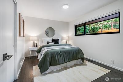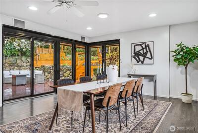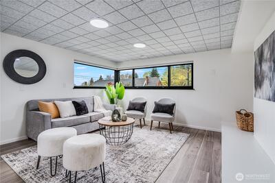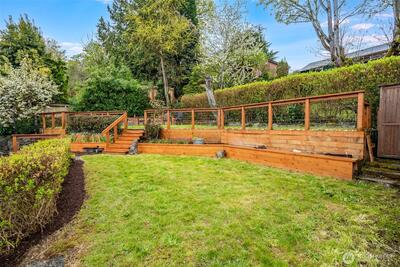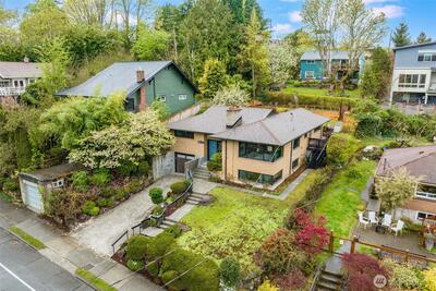 Welcome to this beautiful, lovingly maintained mid-century home in coveted Seward Park, perfectly situated just moments from Lake Washington and all the charm, scenic pathways, and outdoor recreation the neighborhood has to offer. Nestled on a mature, peaceful, and private lot, the thoughtfully designed multi-tiered yard captures serene peek-a-boo views of the lake while offering lush, tranquil spaces to relax and unwind. Inside, you’ll find 4 bedrooms, 2 bathrooms, and a versatile bonus living area, providing flexible and convenient living for today’s lifestyle. Traditional Shoji slider doors open seamlessly to a spacious, wrap-around trex deck, creating an ideal setting for effortless indoor-outdoor entertaining. Thoughtfully updated throughout, this home features an updated electrical panel (2018), central A/C (2022), a remodeled kitchen and bathrooms along with new windows (2019), a new roof in 2017, and a garage door replaced in 2020. With too many updates to list, this move i