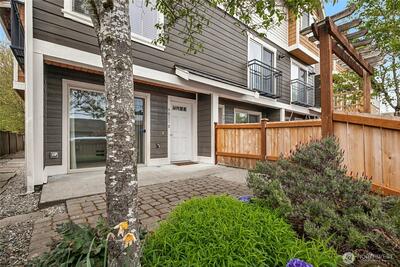 Lovely end unit townhome that truly delivers what buyers want—garage, extra parking, fenced yard, and no HOA dues or restrictions. This is homeownership on your terms. Newly painted inside and out, with brand new higher-end carpet, this home feels fresh and is move-in ready. Flooded with all-day southern light, the main level offers a floor plan that actually works, with defined living, dining, and kitchen spaces, plus a convenient half bath. Beautiful real hardwoods and updated kitchen and bath. Upstairs feels quiet and private with vaulted ceilings, two spacious bedrooms, and a full updated bath. Lower level entry from the garage or courtyard includes an additional flex room—perfect for a guest bedroom, office, or den. Summer-ready with a welcoming front yard and patio, ideal for BBQs, gardening, and connecting with neighbors. Parking is a true standout. Attached garage with shop/storage space, plus rare additional parking thanks to end-unit placement at the end of th