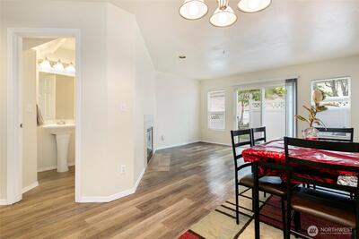 Tastefully-updated townhome featuring a one-car attached garage. This fabulous town home features two oversized bedrooms, including a luxurious primary suite with vaulted ceilings. Step inside to discover a bright and inviting living and dining areas, anchored by a cozy fireplace—perfect for relaxing or entertaining. The kitchen has custom finishes with elegant granite countertops, stainless steel appliances and ample storage with clean cabinetry. Just off the main living space, you’ll find a serene patio—perfect for unwinding at the end of a long day or starting your morning with a peaceful cup of coffee. Ideally located in the heart of Federal Way, offering easy access to shopping, freeways, and public transit. The home includes an attached one-car garage plus ample additional parking. HOA dues cover water, sewer, and garbage, and there’s NO RENTAL CAP —making this a great opportunity for both homeowners and investors. Welcome home!