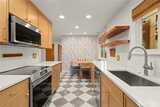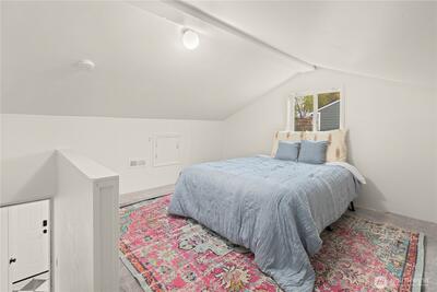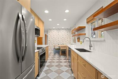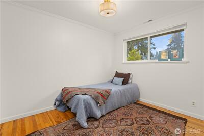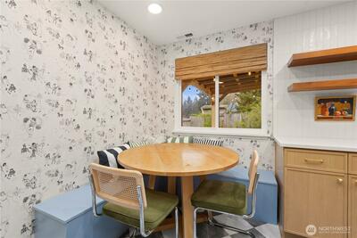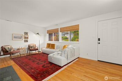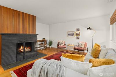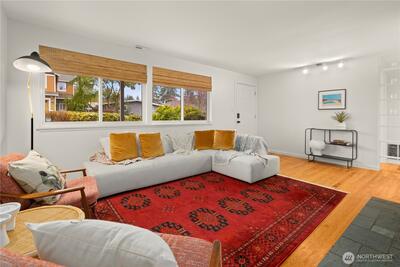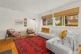 Timeless charm meets modern living in this beautifully reimagined 1955 rambler. Classic character & quality upgrades. From the moment you step inside, warm hardwood floors and an inviting tone in the sun-filled living room make it instantly feel like home. Fully remodeled kitchen featuring designer wallpaper, new appliances, and curated finishes that elevate everyday living. Many details have been considered in this home: fresh interior paint throughout gives the move-in-ready feel, the bathroom impresses with upgraded tile, a new vanity, and refined finishes. All-new windows throughout the home provide natural light while enhancing energy efficiency, and a fully updated electrical panel and furnace deliver peace of mind for years to come. The layout is livable as it is versatile, offering two bedrooms on the main floor plus an upper-level retreat, perfect as a third bedroom, home office, studio, or cozy play space. Oversized laundry room and storage space provide everyday functi