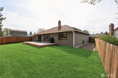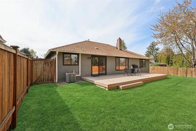 Enjoy single-level living with added privacy in the desirable Kent East Hill neighborhood. This charming 1-story home offers 3 bedrooms and 2 bathrooms and is move-in ready with fresh exterior paint and a new deck. The large, fully fenced backyard is perfect for summer BBQs, entertaining, or relaxing outdoors. Inside, enjoy great natural light, air conditioning, and a cozy fireplace for year-round comfort. The primary bedroom includes an ensuite bathroom and a spacious walk-in closet. West to northwest exposure brings warm afternoon and evening light to the front, with morning light in the backyard. Conveniently located near parks, shopping, dining, and major commuter routes, offering an easy drive to Boeing, Seattle, and surrounding areas.