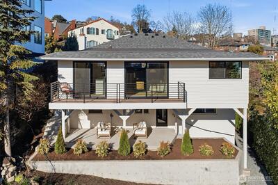 Location, location, location! This beautiful home is located on the most coveted part of Queen Anne, the Southwest slope. Completely renovated down to the studs. Sun-filled with stunning views of downtown Seattle, the Space Needle, Mount Rainier and the Puget Sound. Open-concept chef’s kitchen with top appliances & over-sized island flows into living/dining area & backyard deck. Primary suite w/ ensuite & walk-in closet. 2 beds & 2 baths on main, 2 beds & 1 bath on lower w/media space. Park-like backyard & patio. View one car garage and two full car parking for a total of minimum three parking spaces. A stone’s through to parks, cafes, shopping, schools & minutes to South Lake Union & downtown Seattle.