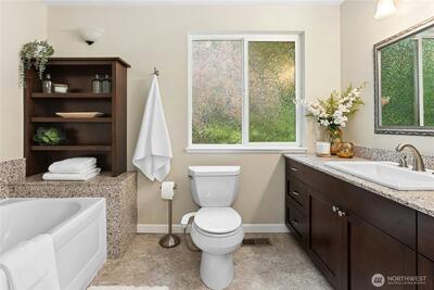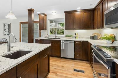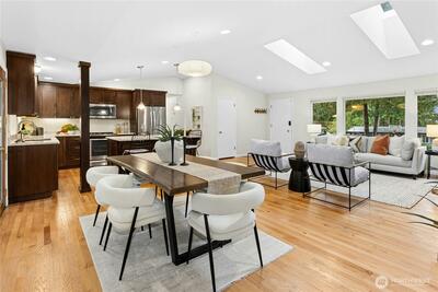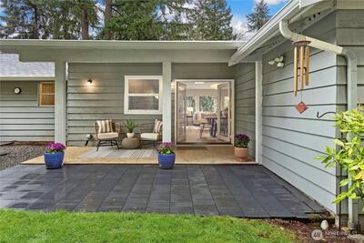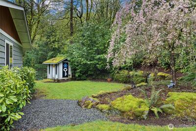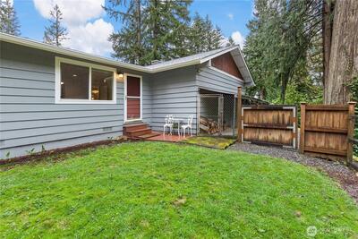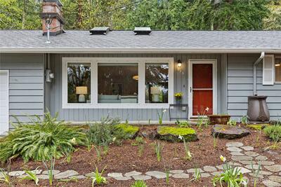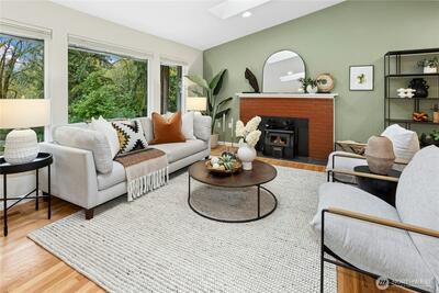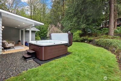Tucked away on the end of Mt Index Pl, rests this one-of-kind rambler nestled up against a scenic greenbelt with creek below. On nearly half an acre lot offering a rare blend of tranquility, privacy, and refined comfort, this is just a short walk from downtown Issaquah. Vaulted ceilings and skylights bathe the great room in natural light, while French doors open to a serene outdoor sanctuary overlooking a peaceful creek. Rich oak hardwood floors extend throughout the main living spaces, complemented by a thoughtfully updated kitchen with open great-room design. Unwind under the covered patio in your private hot tub, or gather around the cozy wood stove on cooler evenings. Designed for easy living, the home features updated electrical and plumbing (2016), a newer 10 year old roof, and a 3-year-old HVAC system with an energy-efficient electric heat pump for year-round comfort. Located within the award-winning Issaquah School District, this exceptional property offers the perfect ba