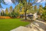 Set amidst towering evergreens, this residence presents a compelling blend of modern form and effortless livability. The approach is memorable, with intentional design elements that hint at the level of detail carried throughout the home. Inside, bright interiors and a flowing layout create spaces that feel both connected and comfortable. At the heart of the main level, the kitchen is designed for gathering and everyday ease, featuring an oversized island, quartz counters, streamlined cabinetry, and quality appliances. The adjoining living area centers around a five-foot electric fireplace with integrated heat, positioned beneath a dedicated TV niche, offering both style and function. Expansive glass doors extend the living space outdoors to a deck that overlooks a spacious flat yard with a sports court area—well-suited for recreation, gardening, or entertaining. Extra parking for a boat, sports van, & more in the back yard area, plus the cutest playhouse you have ever seen.