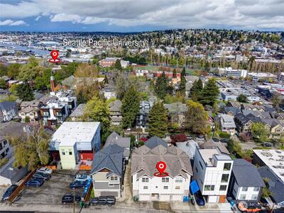 Discover this rare 3-bedroom 3 bath North Queen Anne townhome that checks every box for investors and owner-occupants alike. Located within easy walking distance of Fremont and Seattle Pacific University, this light-filled residence blends modern finishes, smart layout, and a serene private yard. Great Room features gas fireplace, deck with gorgeous views, and seamless flow to the kitchen, perfect for entertaining. Chef’s kitchen has stone counters, stainless appliances, gas range, maple cabinetry. On the main floor is a bedroom/flex space with ensuite bath and walk-in closet that opens to a fenced, landscaped Zen-style backyard — private, tranquil, low-maintenance outdoor living. On the upper level you will find 2 primary suites, each with ensuite baths, walk-in closets, vaulted ceilings, and abundant natural light. One-car attached garage and additional storage. Minutes on foot to SPU and the shops, cafés, and nightlife of Fremont. Excellent access to transit and major arteri