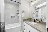 Welcome to this beautifully designed home offering the perfect blend of space, comfort, and versatility—ideal for multigenerational living. Thoughtfully laid out to provide both connection & privacy, this home truly adapts to your lifestyle. Completely renovated from top to bottom in 2022, with additional recent modern updates throughout. Featuring an open-concept design & expansive living spaces. The chef’s kitchen is a true showstopper, complete with a stainless-steel farmhouse sink, new smart appliances, a large island, & sleek quartz countertops. Enjoy new flooring on the main level & plush new carpet on the upper & lower levels. Recent upgrades include a New HVAC Heat Pump System, new water heater, Smart dimmable switches & Moen bidets installed throughout the home for added comfort. The modern primary suite offers a spa-like bathroom with a beautifully tiled shower, heated towel bar, & an oversized soaking tub. The spacious basement—featuring a full bath, kitchen, and optio